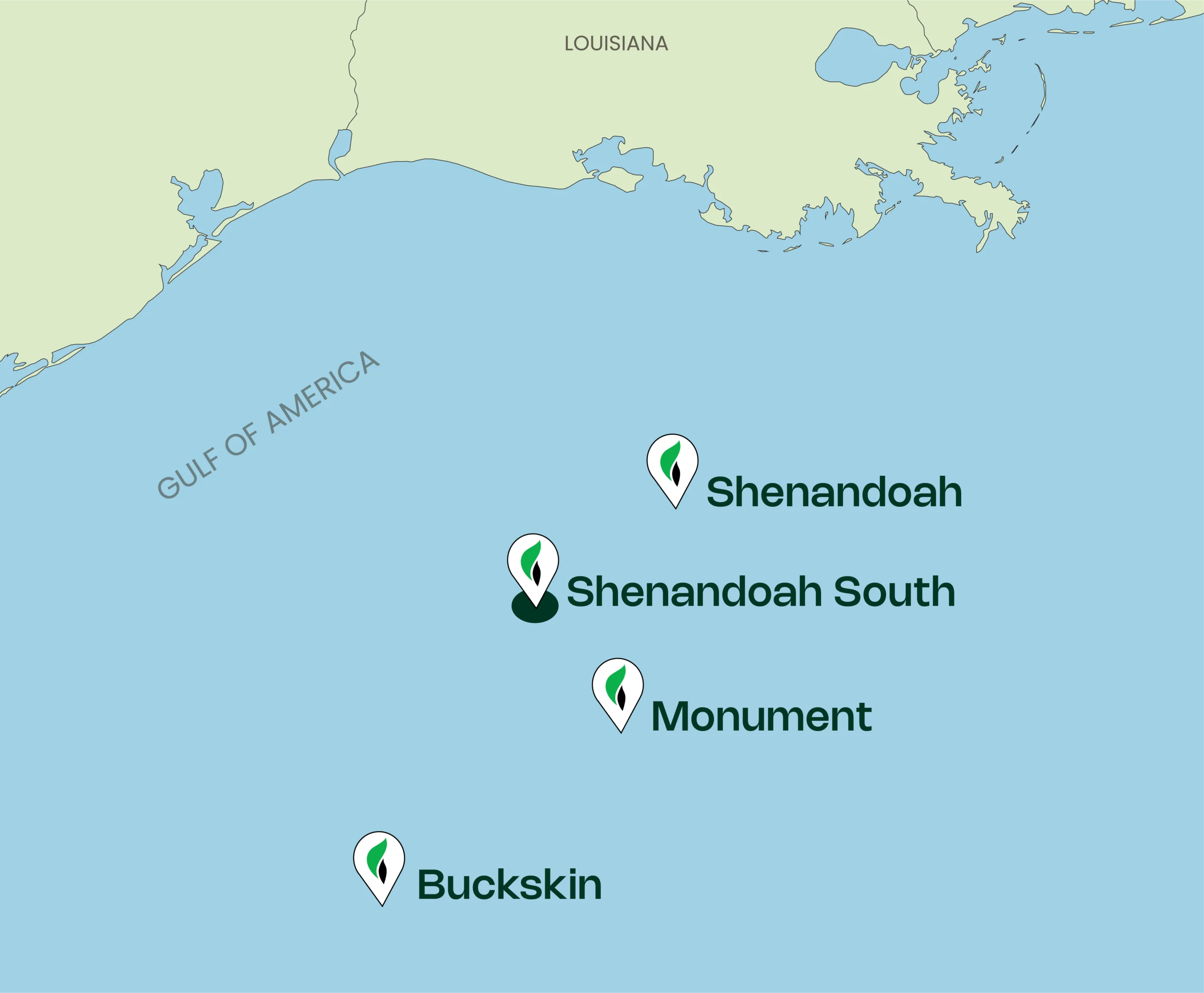 Shenandoah South is an oil and gas discovery in the deepwater Gulf of America, adjacent to the Shenandoah field. Navitas owns 41.85% working interest.